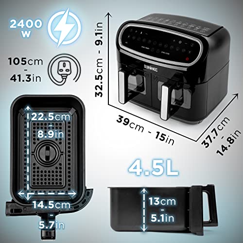 Duronic AF24 Airfryer XXL 9 l dwie komory 2x 4,5l 10 zdefiniowanych programów | frytkownica XXL beztłuszczowa podwójna | na gorące powietrze piekarnik | dwa kosze | zakres temperatur 50-200 stopni