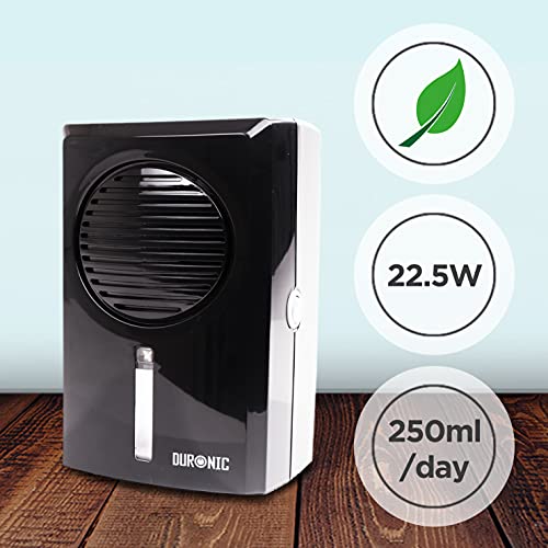 Duronic DH05 Osuszacz powietrza pochłaniacz wilgoci wydajność 250 ml / dobę 22 5 W | mały pochłaniacz do łazienki lub kuchni sypialni | cichy i wydajny | przenośny | pojemność 500 ml | auto off