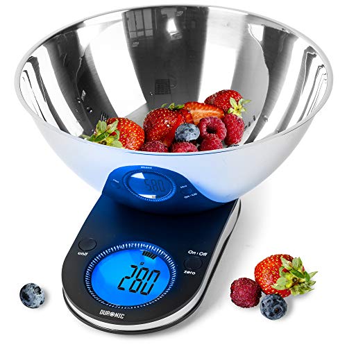 Duronic KS5000 Cyfrowa waga kuchenna do 5 kg z 3 l misą ze stali nierdzewnej | waga elektroniczna z dużym wyświetlaczem | baterie w zestawie | zmiana jednostek dla zagranicznych przepisów