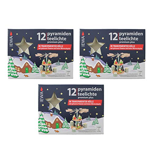 Ebersbacher Kerzenfabrik GmbH Zestaw 3 świeczek w kształcie piramidy 12 sztuk/opakowanie z przezroczystą osłoną (3 x 12 sztuk)