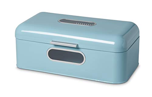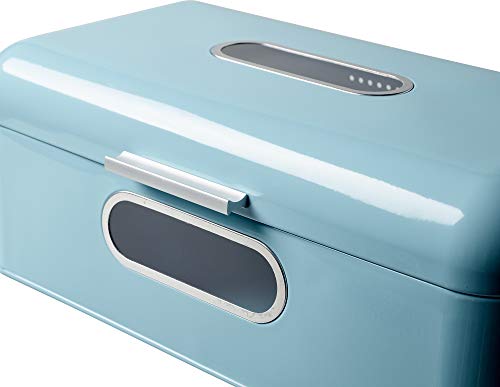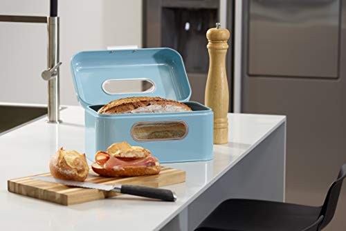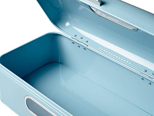 Echtwerk Chlebak w stylu retro z metalu z okienkiem, oszczędzające miejsce pudełko do przechowywania, kosz na chleb z pokrywką, jasnoniebieski, 42,5 x 23,8 x 17 cm