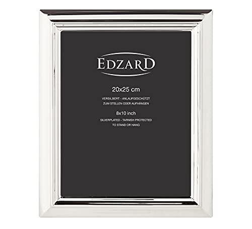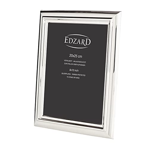 EDZARD ramka na zdjęcia Florenz, rozmiar 20 x 25 cm, szlachetnie posrebrzana, ochrona przed matowieniem, z aksamitnym grzbietem, w zestawie 2 zawieszki, ramka na zdjęcia do postawienia i zawieszenia