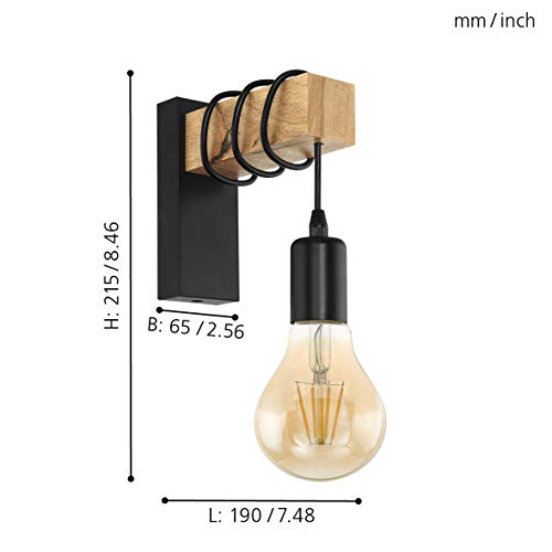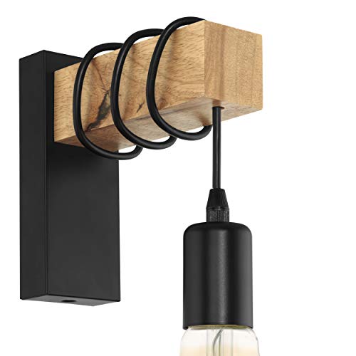 Lampa ścienna EGLO TOWNSHEND, 6-ogniskowa, lampa ścienna vintage w stylu industrialnym, lampa retro wykonana ze stali i drewna, kolor: czarny, brązowy, oprawka: E27