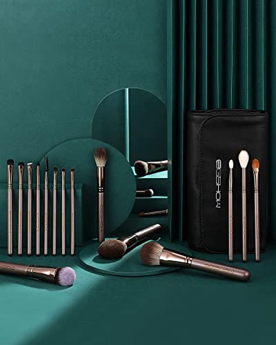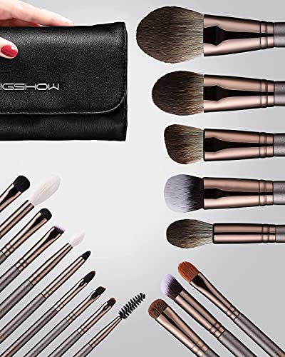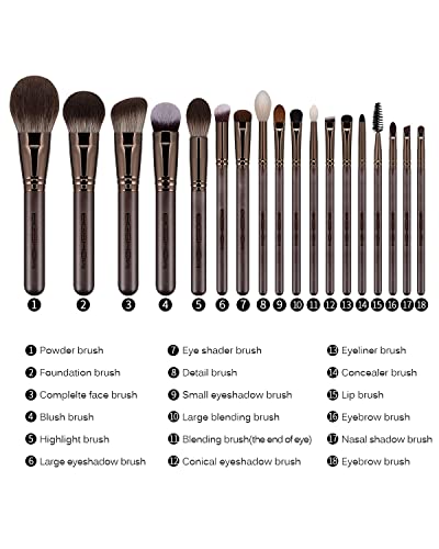 EIGSHOW Profesjonalny 18-częściowy zestaw pędzli do makijażu z eleganckim etui do podkładu, do mieszania pudru, szminki, różu, bronzera, eyelinera, konturu, cieni do powiek, brwi