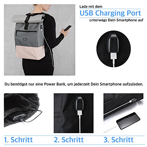 Ela Mo Plecak damski, plecak szkolny, zwijany top, piękny, wygodny i przemyślany, 18 l