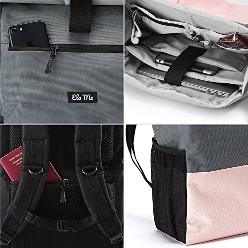 Ela Mo Plecak damski, plecak szkolny, zwijany top, piękny, wygodny i p