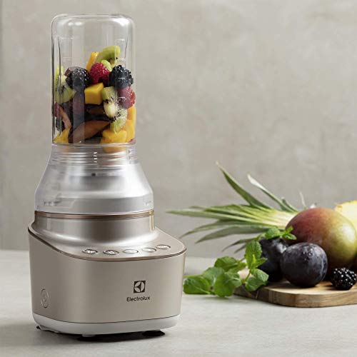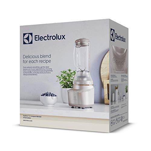 Electrolux Blender Kielichowy, 2 dedykowane programy, 2 prędkości + funkcja pulse, Wielofunkcyjny młynek, Rozdrabniacz oraz butelka, 6 noży ze stali nierdzewnej, 0,6 l dzbanek E7CB1-8SSM, Piaskowy