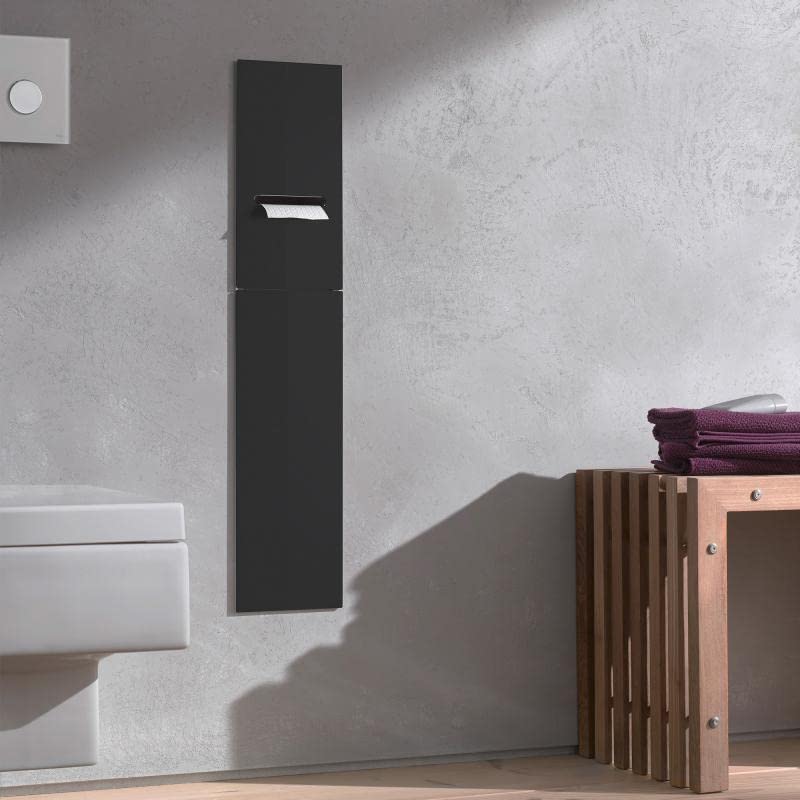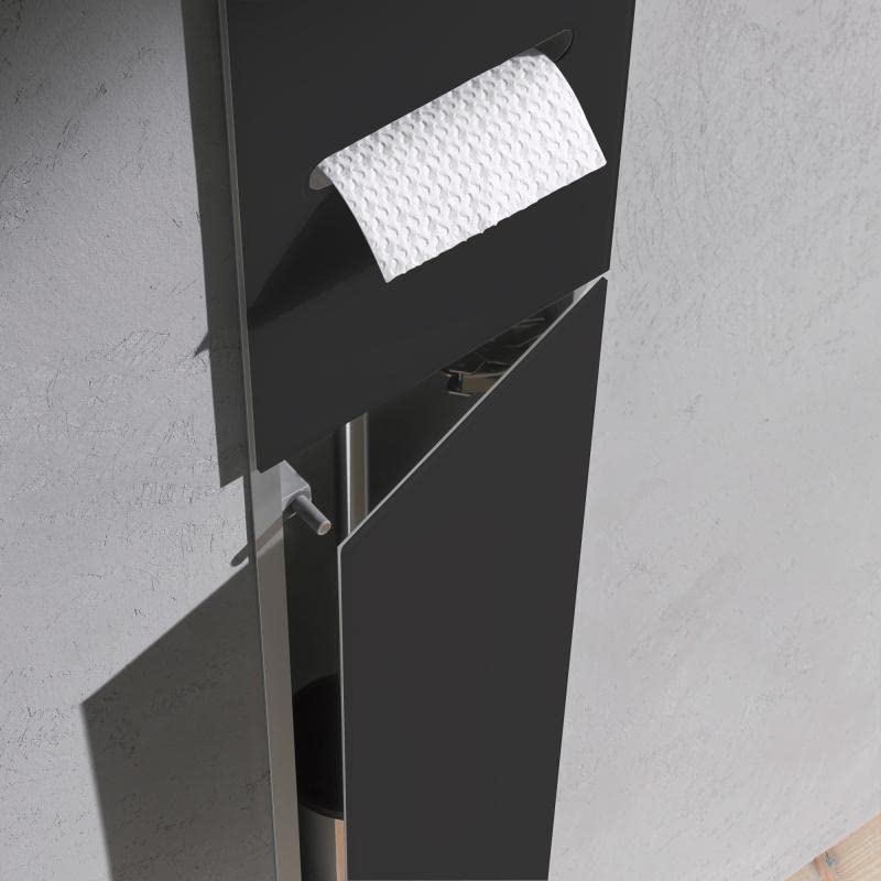 emco ASIS 2.0 podtynkowy moduł szafkowy do zestawu szczotek klozetowych, szafka łazienkowa z uchwytem na papier toaletowy i dodatkową przegródką, wysoka szafka z funkcją Push to Open, czarna