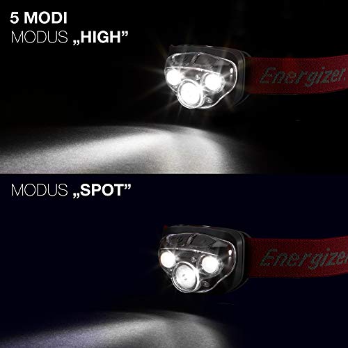 Energizer Latarka czołowa LED, potężny jasny reflektor, wodoodporny reflektor na kemping, wędkowanie i bieganie, baterie w zestawie, rdzawoczerwona – Amazon Exclusive