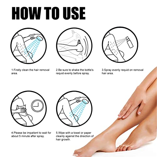 • Rozłóż nadmiar włosów: Bezbolesny spray do depilacji zawiera aktywne składniki, które mogą rozkładać i usuwać nadmiar włosów, pomagając pozbyć się zakłopotania włosów.