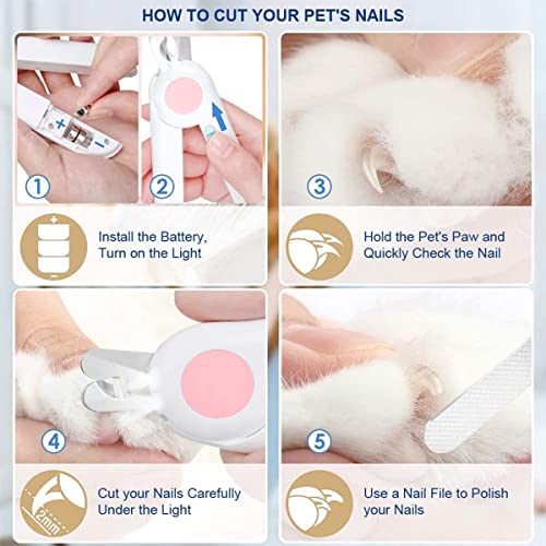 EPROICKS Obcinacz do paznokci ze światłem LED dla psów, nożyce do pazurów dla kotów, z pilnikiem do paznokci i urządzeniem ochronnym, do pielęgnacji pazurów średnich i małych zwierząt domowych