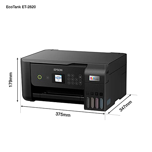 Epson EcoTank ET-2820 Wielofunkcyjne urządzenie 3 w 1 (kopiarka, skaner, drukarka, DIN A4, WiFi, USB 2.0), duży zbiornik z atramentem, wysoka wydajność, niski koszt strony, czarny