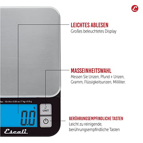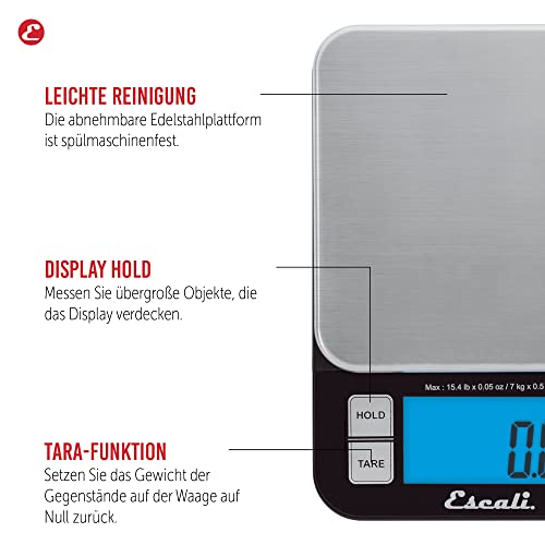 Escali SQ157B Nutro Cyfrowa waga spożywcza, wielofunkcyjne urządzenie kuchenne, precyzyjne mierzenie wagi i kontrola porcji, proste pieczenie i gotowanie, platforma ze stali nierdzewnej, czarna