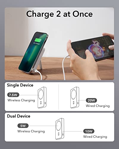 ESR HaloLock stojak MagSafe Powerbank z kablem USB-C 10 000 mAh, akumulator bezprzewodowy, zestaw baterii MagSafe z kablem USB-C; kompatybilny z iPhone 14/14 Pro/14 Pro Max/14 Plus i serii 13/12, biały