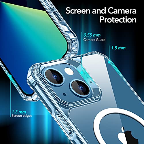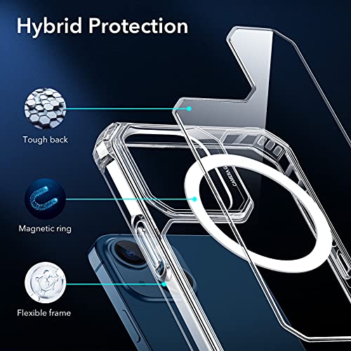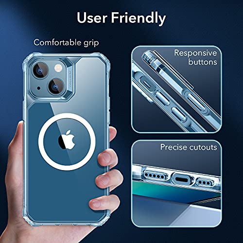 ESR Etui magnetyczne Air Armor z blokadą HaloLock kompatybilne z iPhone 13, kompatybilne z MagSafe, ochrona klasy wojskowej, odporne na żółknięcie twardy tył, amortyzujące narożniki, przezroczyste