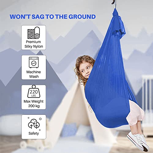 • Wysokiej jakości materiał: huśtawka dziecięca wykonana jest z wysokiej jakości jedwabiu nylonu, który jest miękki w dotyku i trwały. Można go bez problemu udźwignąć do 200 kg bez rozciągania się na podłogę. sensoryczna huśtawka terapeutyczna dla dzieci i dorosłych.