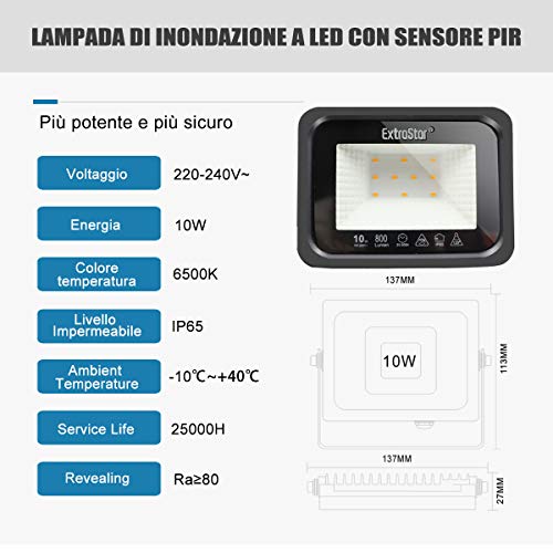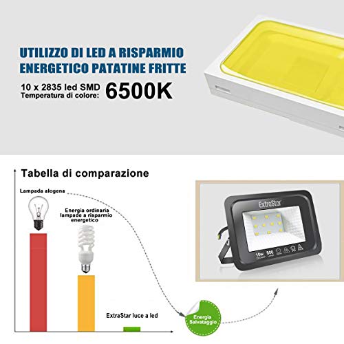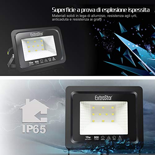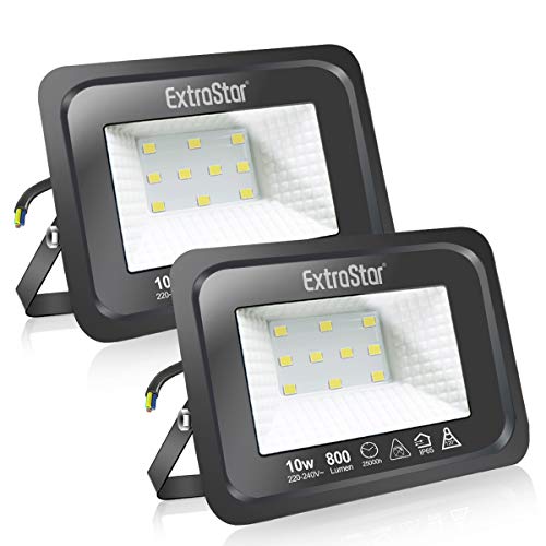 EXTRASTAR Reflektor LED 10 W, bardzo jasny reflektor LED, na zewnątrz, IP65, wodoszczelny, 6500 K, zimna biel, reflektor zewnętrzny, 2 sztuki