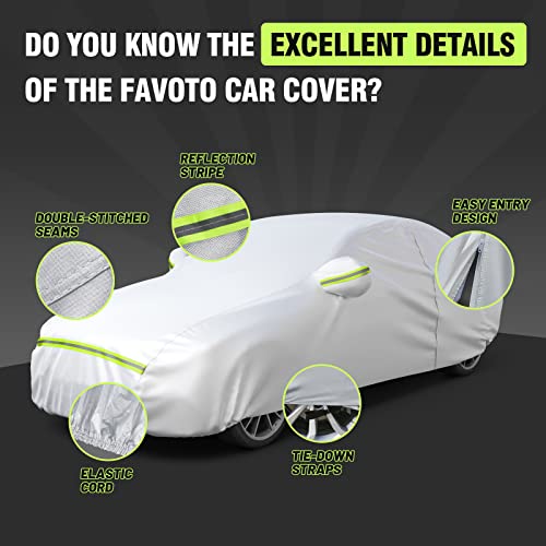【Rozmiar uniwersalny】 –: 【Rozmiar uniwersalny】 – Pełny garaż samochodowy Favoto na cały sezon pasuje do wszystkich limuzyn o długości (450 – 495 cm / 4,9m x 1,9m x 1,5m). W zestawie torba do przechowywania. Możesz po prostu złożyć pokrowiec na samochód i włożyć go do bagażnika.