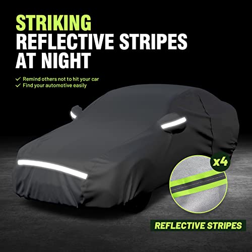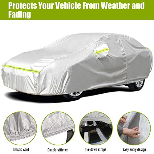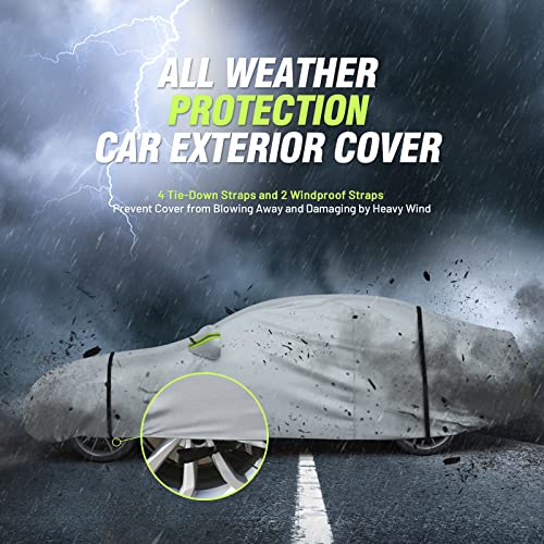 【Wysokiej jakości materiał】: 【Wysokiej jakości materiał】 – Wykonany z grubej, wytrzymałej 6-warstwowej tkaniny oxford (waga 2,8 kg) chroni Twój samochód przed ptasimi odchodami, deszczem, kurzem, ciepłem, promieniami UV i złą pogodą. Może również zapobiegać zadrapaniom.