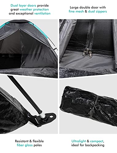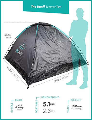 FE Active 4-osobowy namiot kempingowy – 2022 ulepszony design letni namiot typu pop-up 3 do 4 osób, lekki, kompaktowy, ekranowany wejście, szybki montaż. Na zewnątrz, z plecakiem | Zaprojektowany w Kalifornii, USA