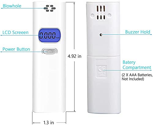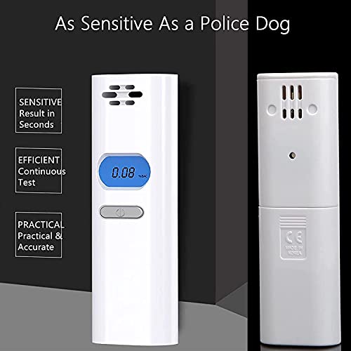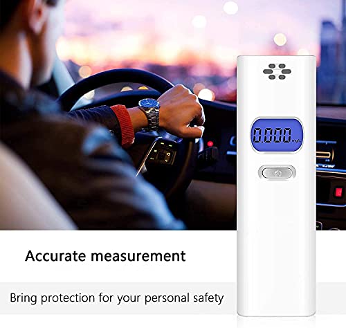 • [Kompaktowa konstrukcja] — Ten alkomat nie zajmuje dużo miejsca, jest lekki i przenośny; wbudowana dysza; łatwy do trzymania i przenoszenia. Kieszonkowy format umożliwia zabranie go wszędzie i o każdej porze i zapewnia bezpieczną jazdę po piciu. Dzięki niebieskiemu podświetleniu można ustawić porządek również w ciemności!