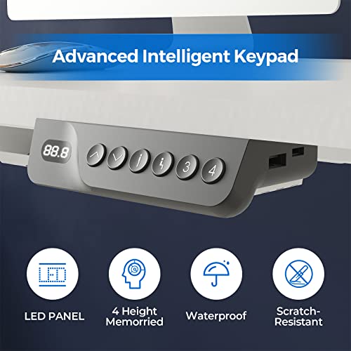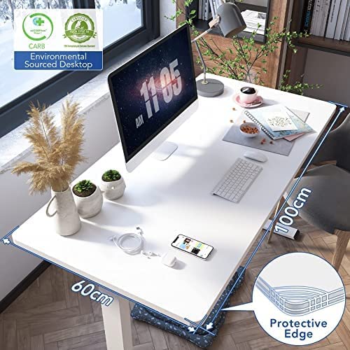 FLEXISPOT EF1 Biurko z regulacją wysokości z pełnym blatem (100 * 60 * 1.6, białe)|z portem ładowania USB|4 przyciski pamięci|Biurko stojące 5E Podnoszony stół do gier do biura i domu