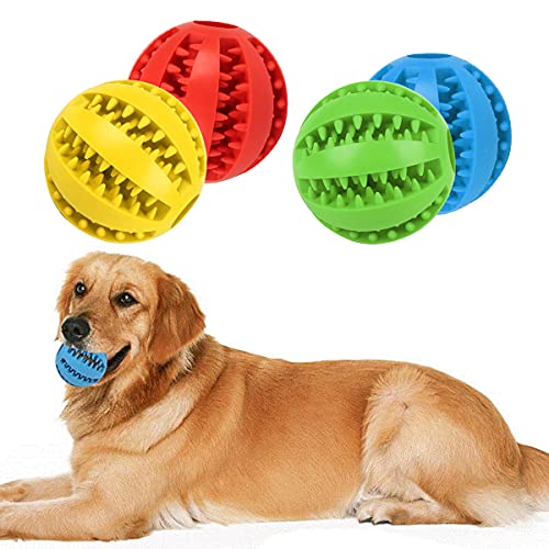 piłka dla psa, 4 sztuki zabawka dla psa solidna gumowa piłka do gry dla psa zabawka do żucia dla średniego i małego psa do czyszczenia zębów (ciemnoniebieski, zielony, czerwony, żółty)
