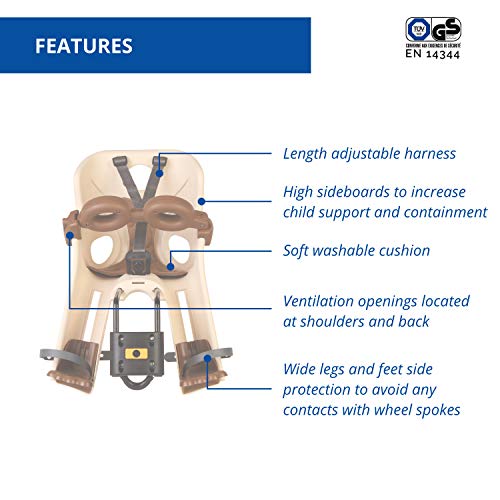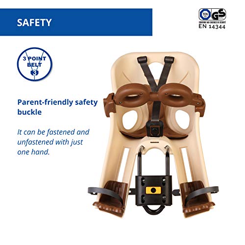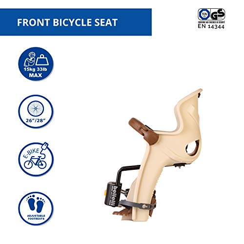 b bellelli Strzałka – Fotelik Rowerowy z przodu – dla dzieci do 15 kg, od 9 miesięcy do 3 lat – Mocowany do ramy – Beżowy