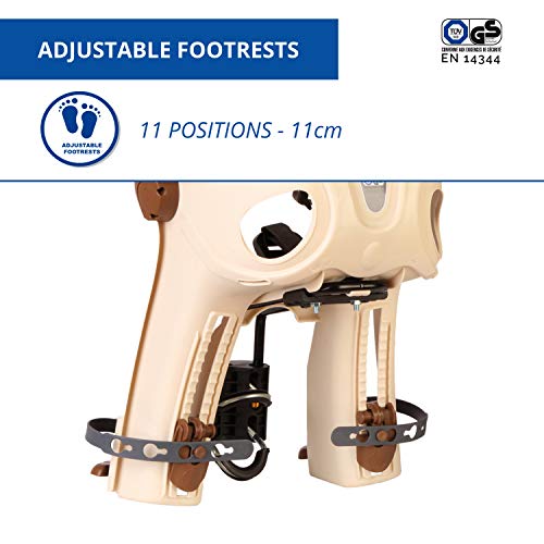 • CERTYFIKOWANE BEZPIECZEŃSTWO – 3-punktowe pasy bezpieczeństwa z regulacją długości. Wysokie boczne brzegi dla lepszego zatrzymania dziecka. Klamra bezpieczeństwa. Szerokie ochraniacze zapobiegające dotykaniu promieni kół przez stopy.