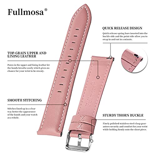 Fullmosa 14 mm, 16 mm, 18 mm, 19 mm, 20 mm, 22 mm, 24 mm, skórzany pasek do zegarka, szybkie odpinanie, dla mężczyzn i kobiet