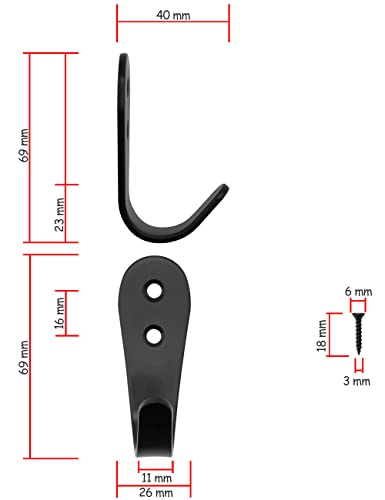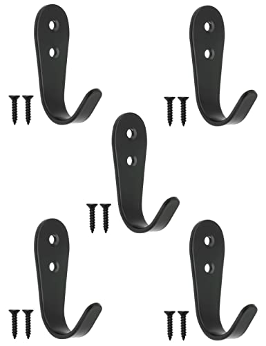 FUXXER® – 5 klasycznych wieszaków żelaznych, wieszaków na ubrania, haczyki na meble, haczyki kuchenne, żelazne wzornictwo, zestaw 5 szt. czarny (duży)