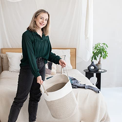 Gadgy Laundry Basket kosz do przechowywania zabawek, do pokoju dzieci?cego, kosz na koce, kosz bawe?niany, be?owy