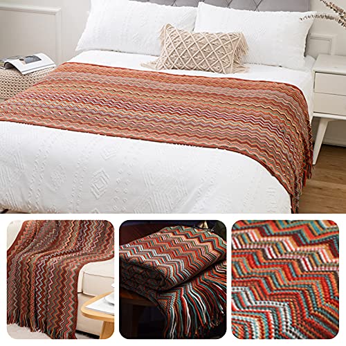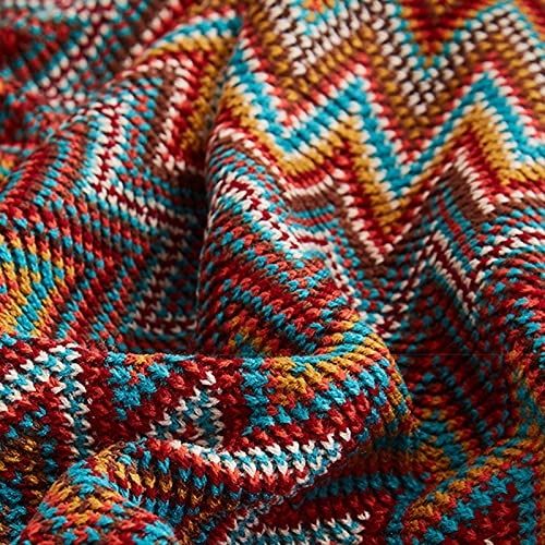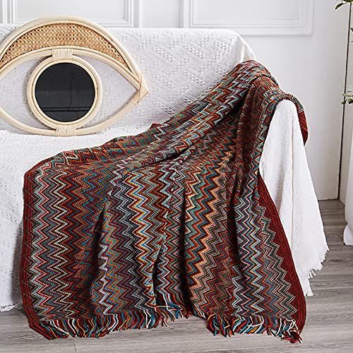 Galatée Wysokiej jakości koc pled kolorowy, wzory, boho, bawełna, przytulny koc, narzuta na sofę, koc do spania, koc dzienny na kanapę – 130 x 230 cm – czerwony