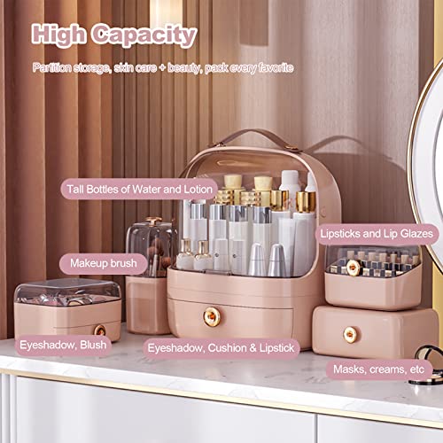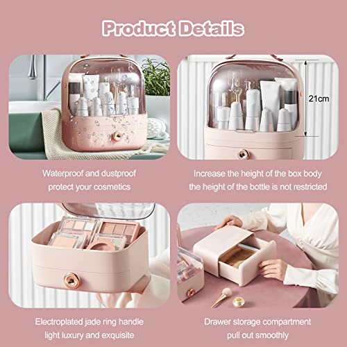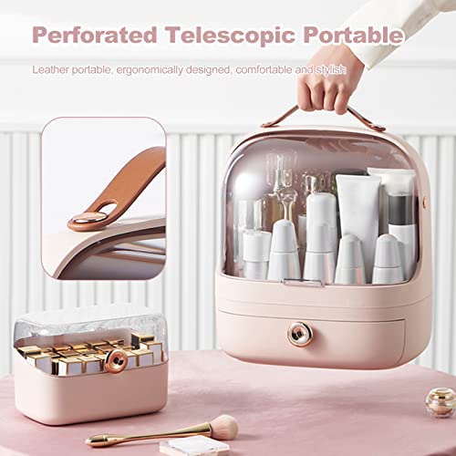Galatée Wielofunkcyjny futerał na makijaż, pyłoszczelne pudełko do przechowywania kosmetyków, produkty do pielęgnacji skóry, organizer na biżuterię, pudełko wykończeniowe, sypialnia, łazienka, biurko, różowy + uchwyt na szczotkę)