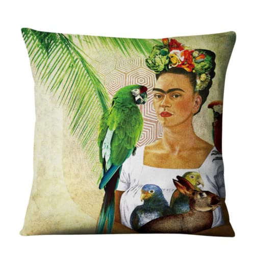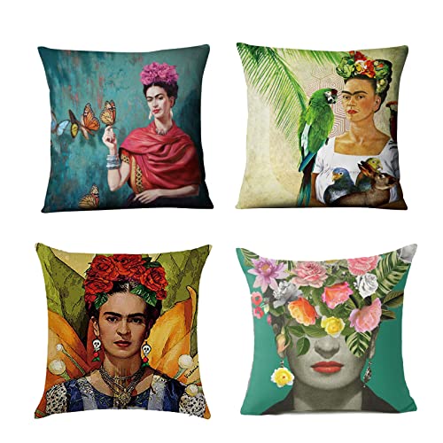 4 zestawy pasujące do Frida Kahlo poszewka na poduszkę, poduszka na sofę, bawełniana poduszka, poduszka na fotel samochodowy 45 x 45 cm, do salonu na sofę i łóżko