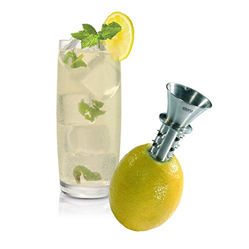 Einzelheiten: Dank des Zitronensaft-Ausgießers wird der Saft perfekt portioniert. Einfach den Ausgießer eindrehen, die Frucht drücken und nach Belieben ausgießen – eine saubere Sache.Auch für Limetten und Orangen geeignet.