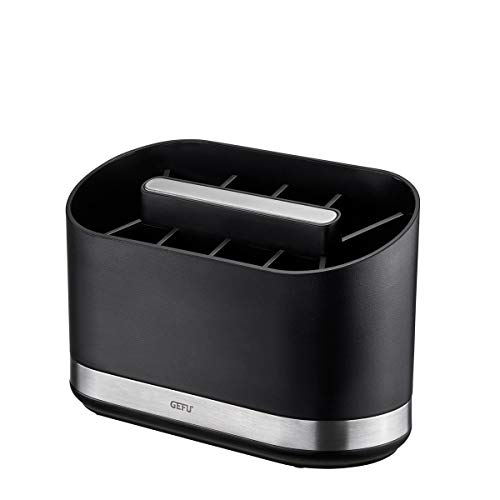 Einzelheiten: Der GEFU Utensilienbehälter SMARTLINE – für eine ordentliche KücheHaben Sie stets den Überblick über all die Küchenhelfer, die Sie täglich benutzen und brauchen. Der schicke Utensilienbehälter SMARTLINE passt in wirklich jede Küche und sorgt nicht nur für Ordnung an der Kochstelle, sondern er überzeugt zudem durch den klassischen, minimalistischen und schicken Look. Dieser Behälter macht sich auch auf dem Esstisch oder am Buffet gut und kann selbstverständlich auch mit Besteck und anderen Gebrauchsgegenständen befüllt werden.Alle Küchenutensilien stets griffbereit auf einen Blick – Der GEFU Utensilienbehälter SMARTLINE machts möglichLegen Sie den Utensilienbehälter Smartline in Ihren Warenkorb und lassen Sie sich von diesem praktischen Schmuckstück überzeugen! Alle Vorteile im Überblick:Utensilienbehälter mit 10-Fächer-EinteilungAufbewahrung von Küchenutensilien verschiedener Größenherausnehmbarer Trenneinsatz für leichte und gründliche Reinigungsicherer Stand dank beschwertem BodenAntirutschfüßeschicker Look aus matt-schwarzem ABS-Kunststoff und gebürstetem EdelstahlAntirutschfüßeL 22,0 cm, B 10.2 cm, H 14,2 cmhochwertiger Edelstahl, ABS, PS