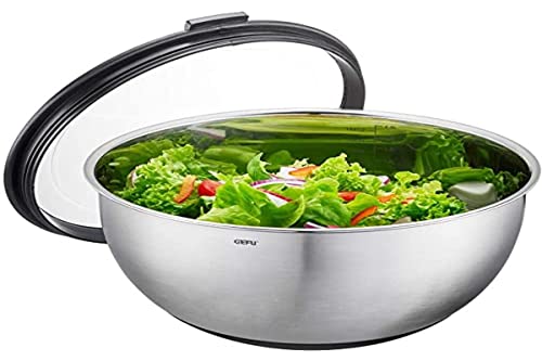 GEFU 35050 Edelstahlschüssel MUOVO, Rührschüssel, Servierschüssel, Salatschüssel, mit Silikonboden und Aufbewahrungsdeckel, Durchmesser 24 cm