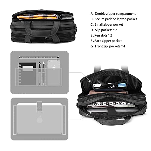 Prezenty dla mężczyzn Bostanten torba na laptopa o przekątnej ekranu 17″ płócienna aktówka torba biznesowa męska torba na notebooka torba z uchwytami torba na ramię czarna duża