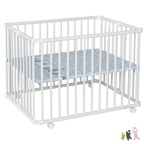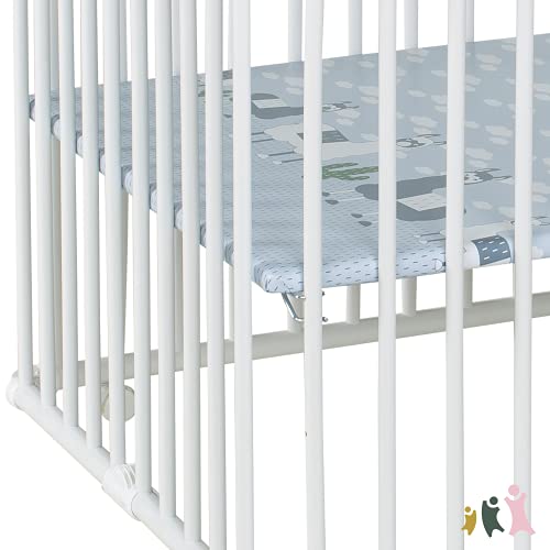 Geuther 2261 Kojec Lucilee Dopasowanie: 76 cm x 97 cm 3-stopniowy beznarzędziowy kojc z regulacją wysokości wyściełany w 4 wariantach kolorystycznych i 7 wzorach Kolor: Biały Wzór: Lama
