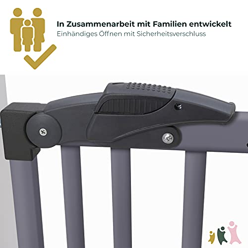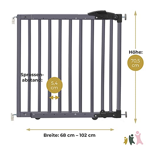 Geuther 2714 schwenkbares Klemm Türschutzgitter, Türgitter, Treppenschutzgitter (Passung: 68 cm -102 cm, zum Bohren oder Klemmen, Sicherheitsverschluss, in zwei Richtungen öffenbar), Grau