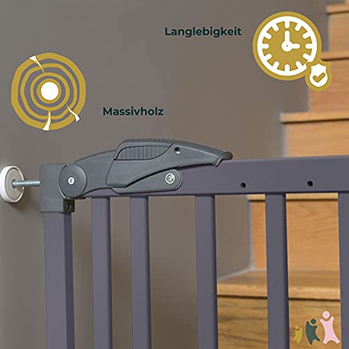 - Geuther Qualitätsprodukt: Das Babygitter ist in Deutschland hergestellt und besteht aus massivem Buchenholz. Es zeichnet sich daher durch eine hohe Nachhaltigkeit und Langlebigkeit aus.