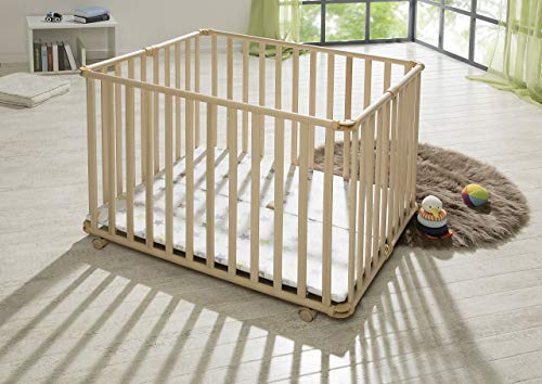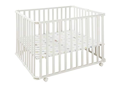 Geuther Stajnia Ameli – składana kojec z drewna w białe gwiazdki kolorowe 106,5 x 90 x 75 cm