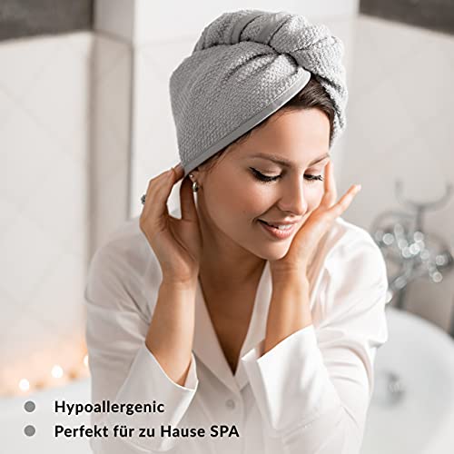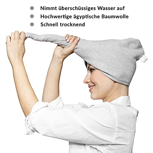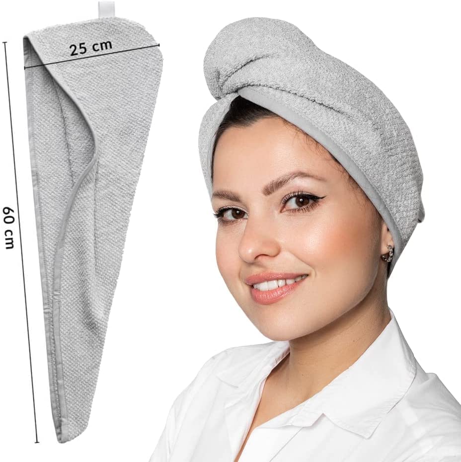 Turban do włosów z bawełny egipskiej Glow4More | Prosty w użyciu | Pochłania nadmiar wody | Do wszystkich rodzajów włosów | Kolor szary