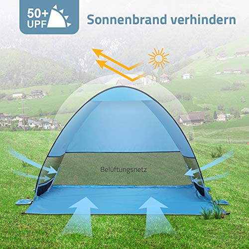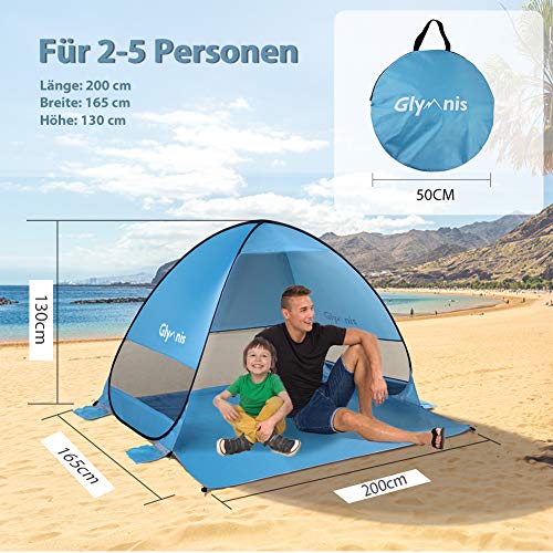 Glymnis Namiot plażowy Pop Up, ochrona przed słońcem, ochrona przed promieniowaniem UV 50+, mały rozmiar po spakowaniu, dla 2-5 osób