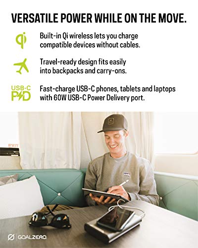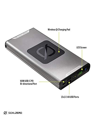Goalzero Zero 100 PD Powerbank 100 Wh 6400 mAh Wydajny Flightsafe Compact USB-C PD AC Wireless C, GZ22060, szary, rozmiar jednostkowy