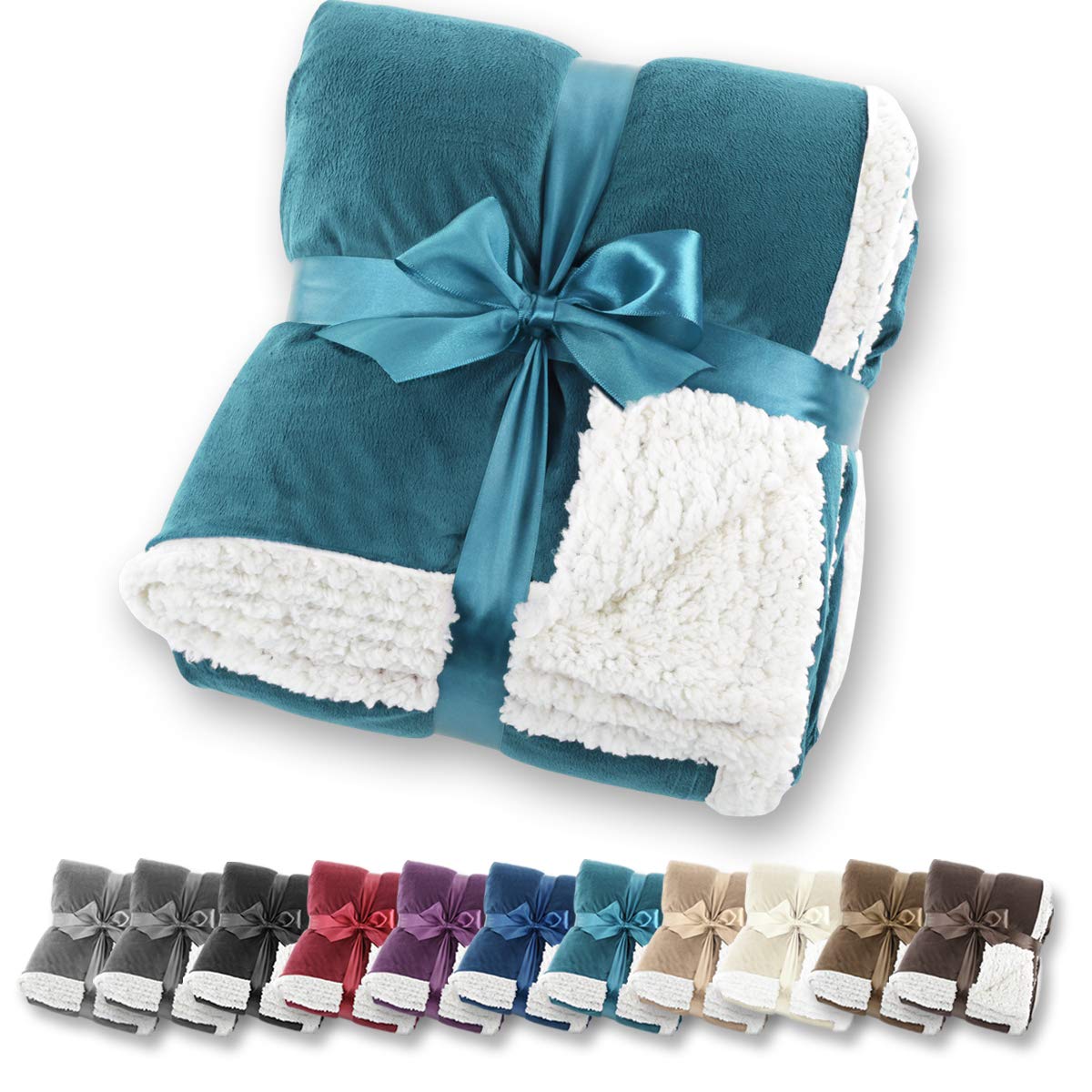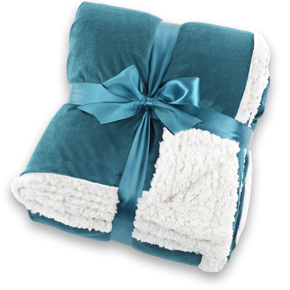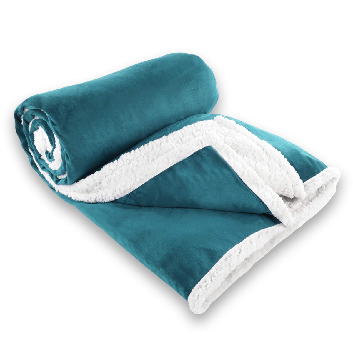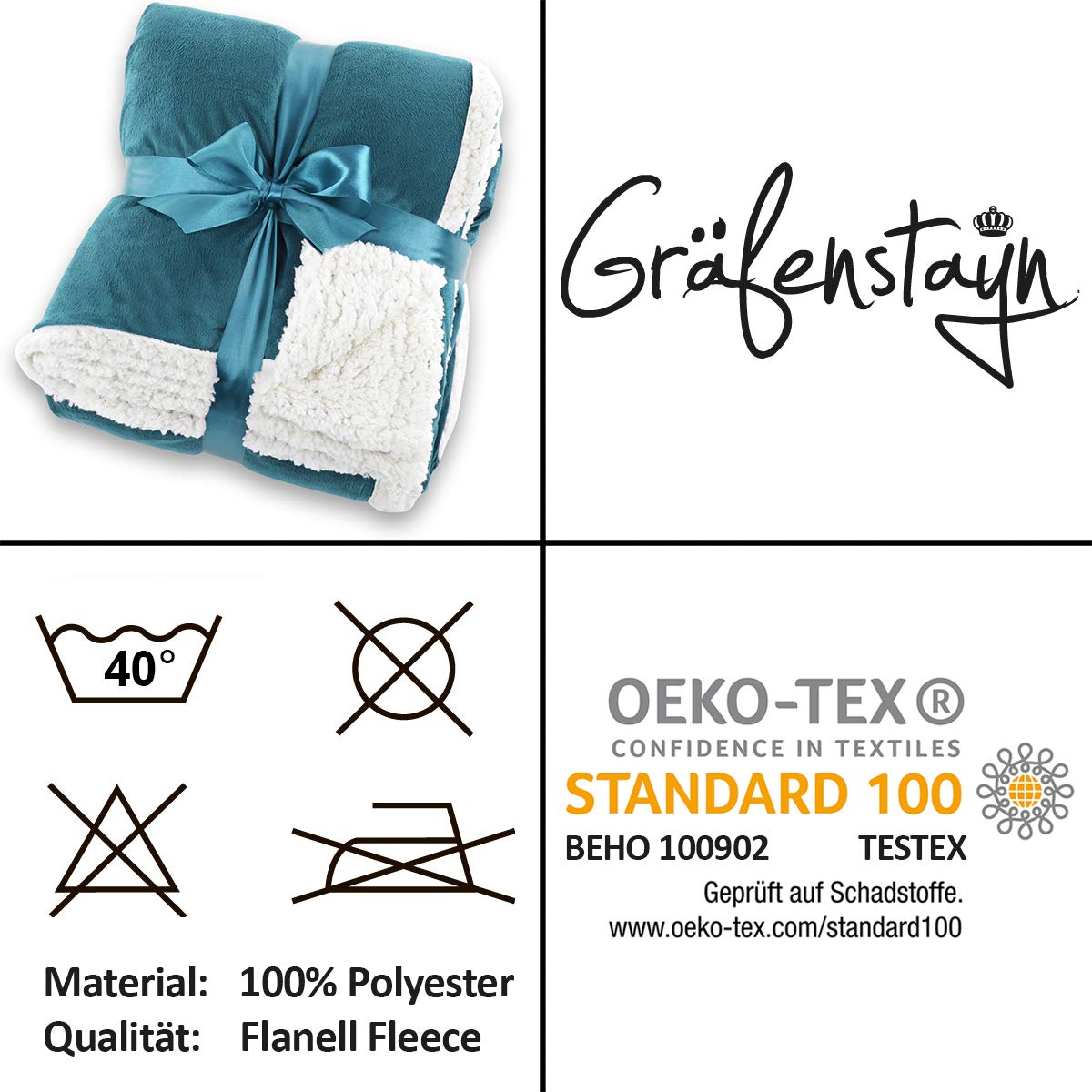 Gräfenstayn® Kuscheldecke in Lammfell-Optik – verschiedene Größen und Farben – Tagesdecke – Flanell Mikrofaser-Flausch – mit Öko-Tex Siegel „geprüftes Vertrauen” (Türkis, 240×220 cm)