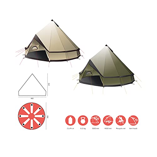 Grand Canyon Unisex-Dorosły Indiana Namiot, Beżowy/Brązowy, 400 x 400 x 250 cm
