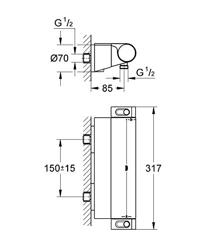GROHE Grotherm 2000 – Thermostat- Brausearmatur (wassersparend, für die Wandmontage, mit Duschablage, Sicherheitssperre bei 38° C), chrom, 34469001