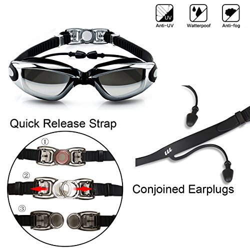 Guzack Okulary pływackie, ochrona przed zaparowaniem i promieniowaniem UV, bez wycieków, z bezpłatnym klipsem na nos, zatyczkami do uszu, dla dorosłyc